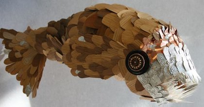 15"x36", copper, bamboo, wood veneer, hot glue, jumbo buttons, beads, prism plastic, cardstock, 2008,